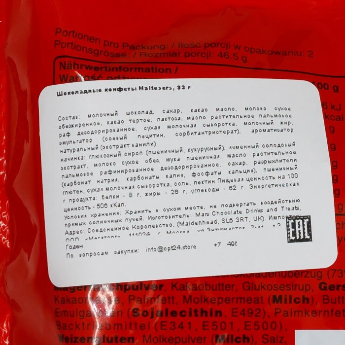 Конфеты Мальтизерс шоколадные 93г