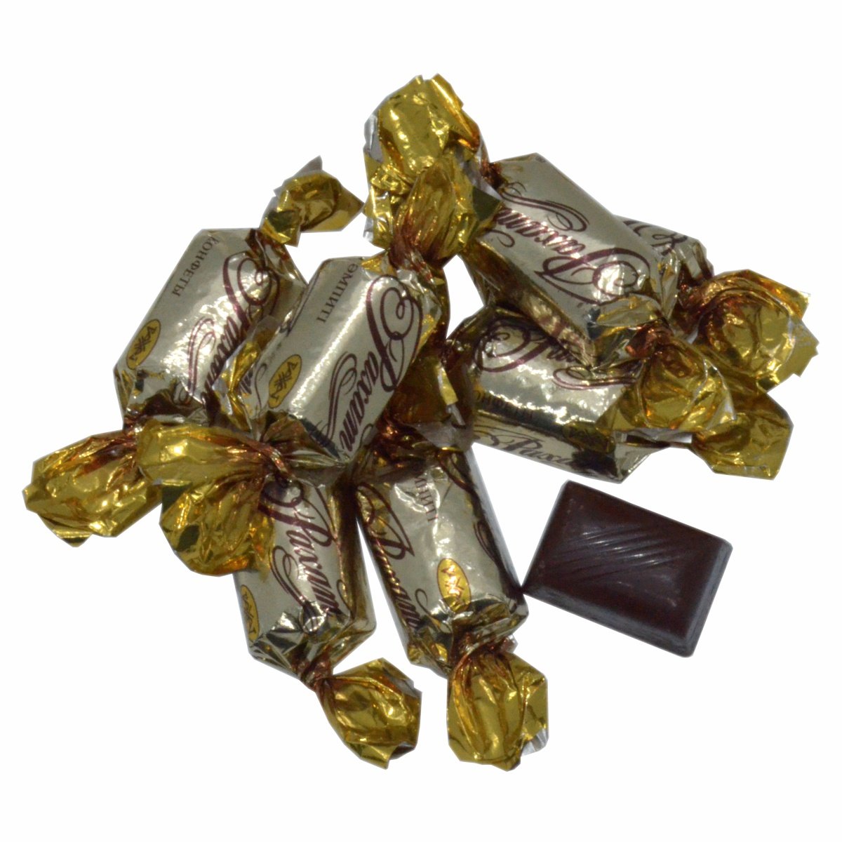 Сахар, какао тертое, какао масло, молоко сгущенное с сахаром, патока, масло сливочное, спирт этиловый, эмульгаторы: лецитин соевый, Е476, Е471, Е492; соль поваренная, коньяк, стабилизатор - инвертаза, ароматизаторы идентичные натуральным, усилитель вкуса и аромата ванилин.