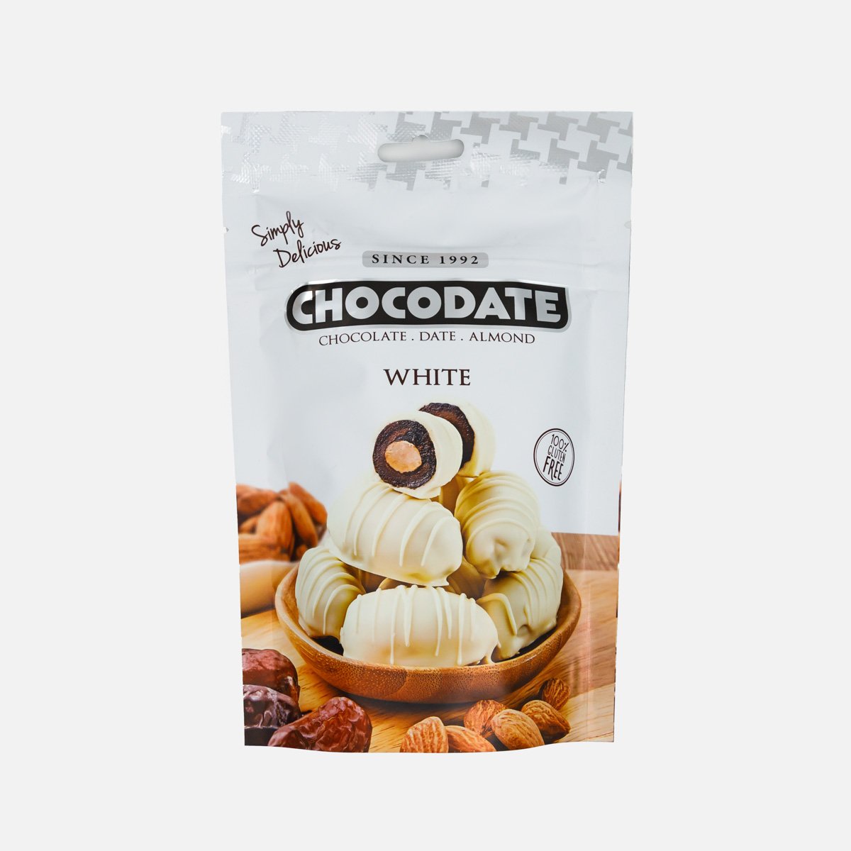 Конфеты Шокодейт Финики с миндалём в белом шоколаде дой/пак 100г