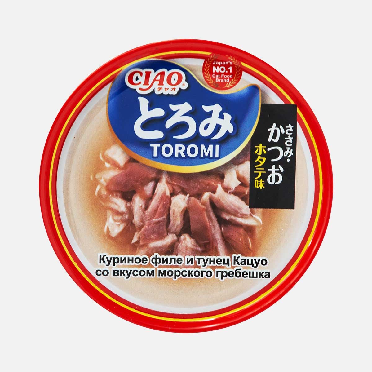 Корм Инаба д/кошек Чао Тороми Кур филе/тунец /гребешок ж/б 80г