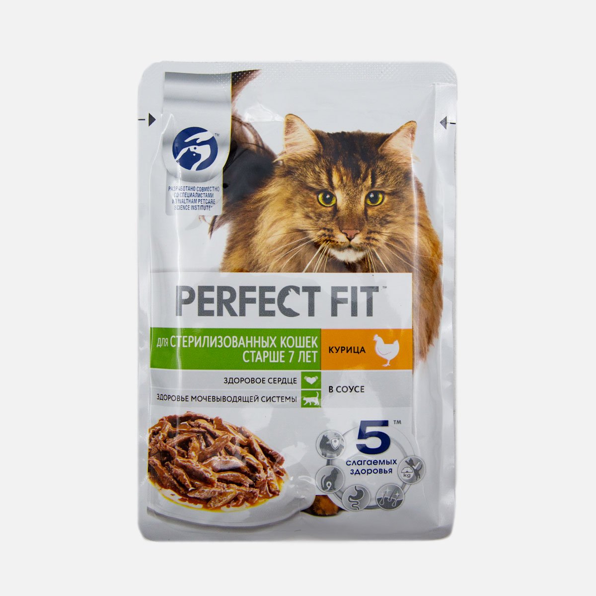 Корм Перфект Фит д/стерилиз кошек старше 7лет Курица в соусе пауч 75г
