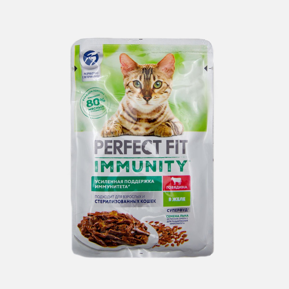 Корм Перфект Фит Иммунитет Говядина в желе пауч 75г