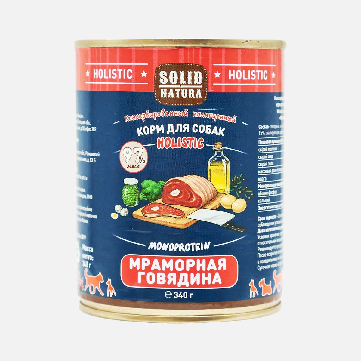 Корм Солид Натура Холистик д/собак Мраморная говядина ж/б 340г
