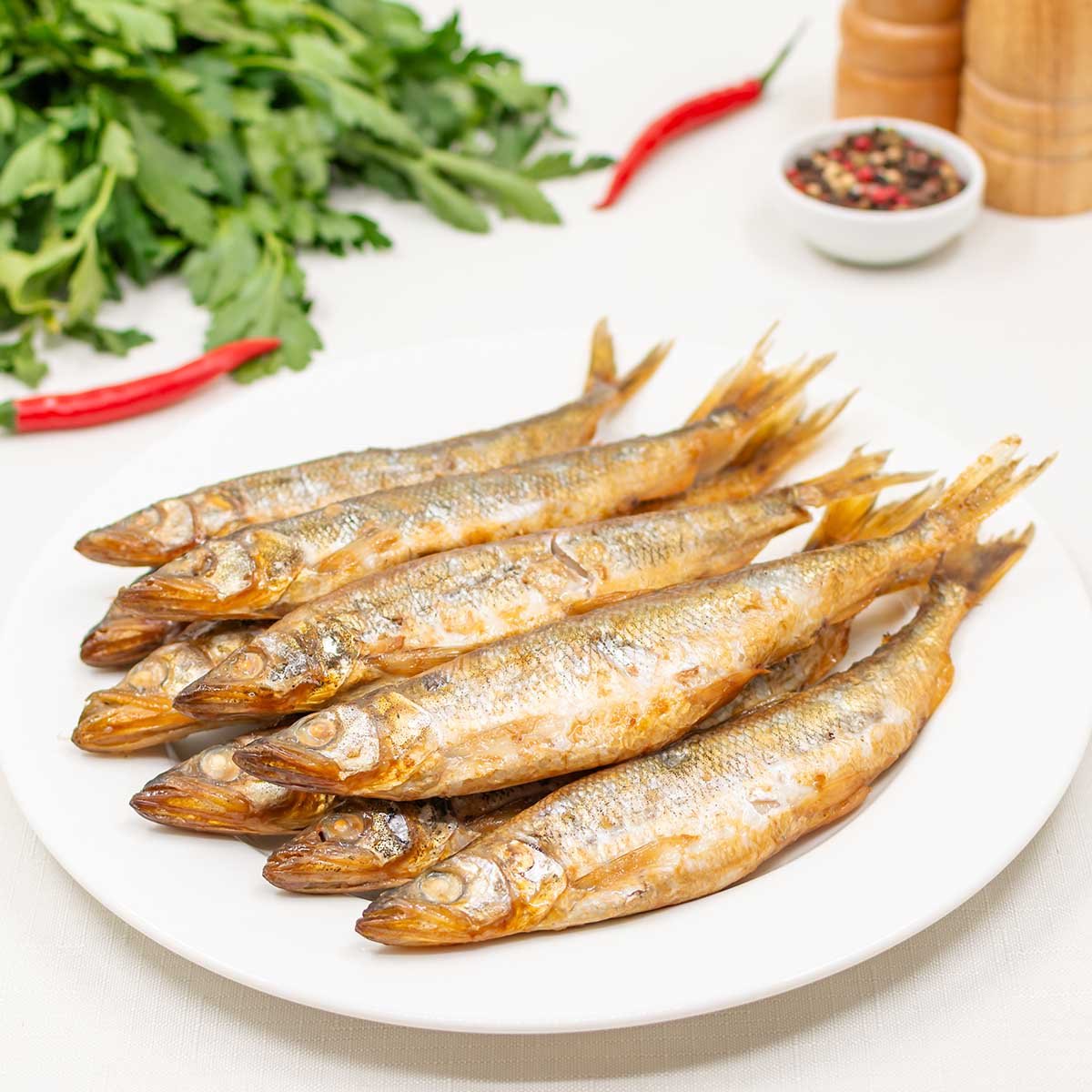 Рыба корюшка, соль, сахар, масло подсолнечное