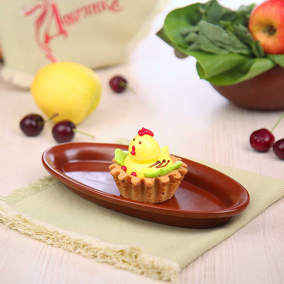 «Корзиночка Цыплёнок» — это гармоничное сочетание рассыпчатого песочного теста и сладкой начинки. Внутри скрывается насыщенный вкус клубничного повидла и молочно-шоколадного наполнителя, дополненного варёной сгущёнкой. Лёгкий аромат коньяка и эссенции лимона создают изысканный послевкусие, а яркий дизайн с использованием пищевых красителей добавляет десерту привлекательности. Это лакомство станет украшением вашего стола, а доставка позаботится о том, чтобы вы наслаждались им свежим.