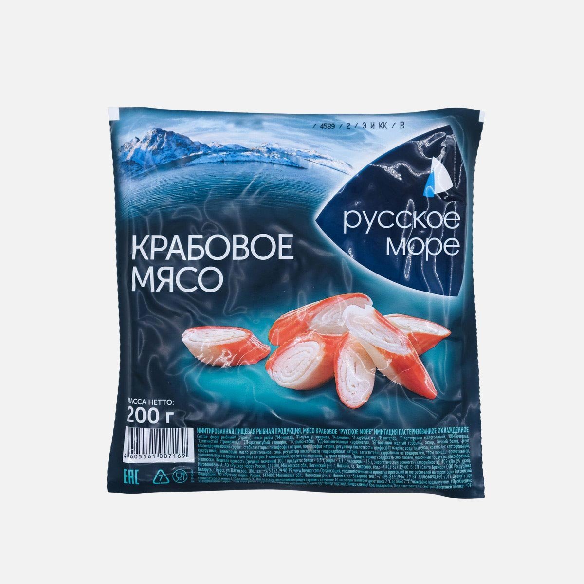 Крабовое мясо Русское море имитир заморож в/у 200г