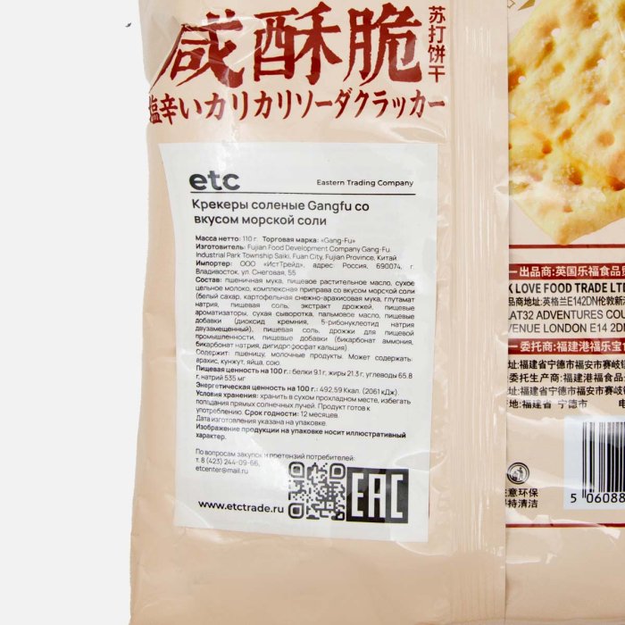Крекер Ганг-Фу соленый со вкусом морской соли 110г