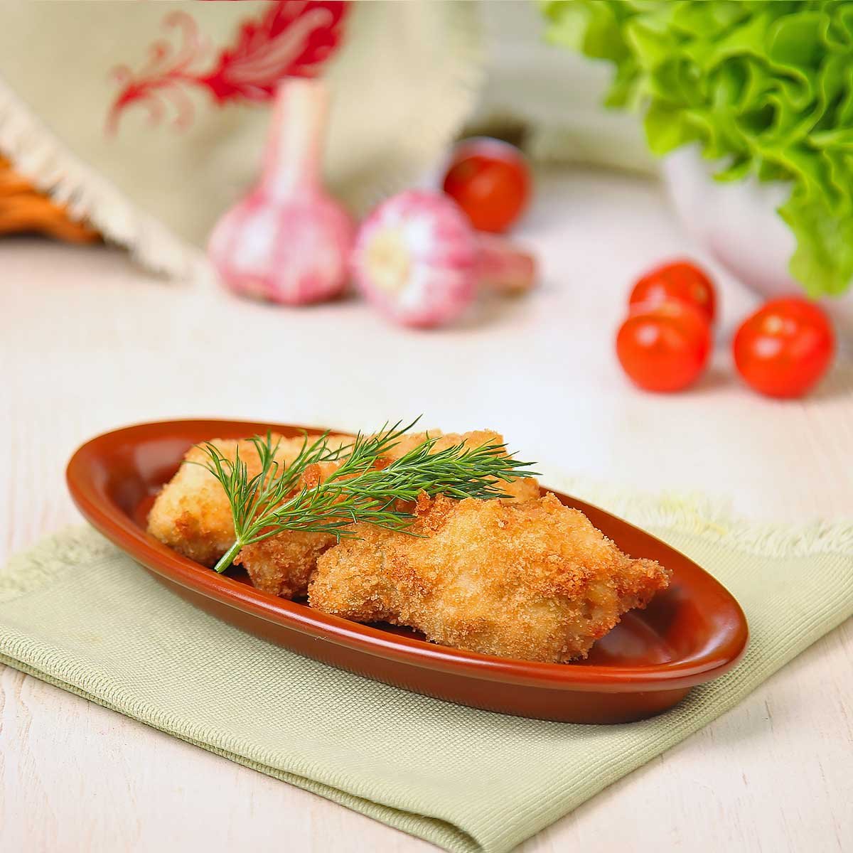 Крылышки куриные, хлеб, масло подсолнечное, яйцо куриное, мука пшеничная в/с, лимон, чеснок, соль, зелень, приправа д/гриля, перец черный молотый.