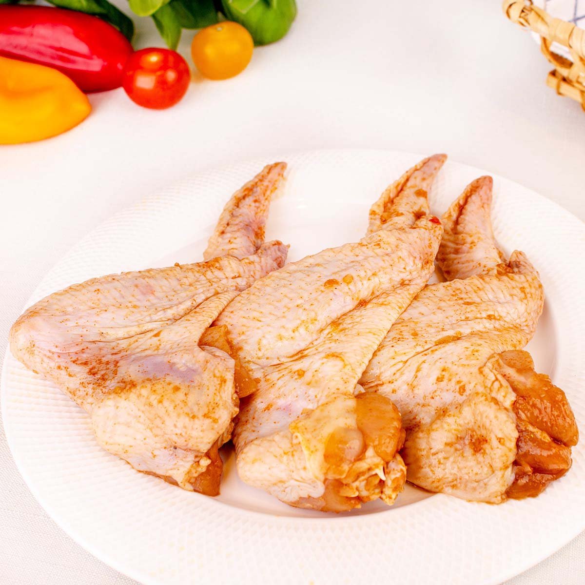 Крылышки куриные, соус соевый, лимон, масло подсолнечное, чеснок, соль, специи Паприка, перец белый молотый.