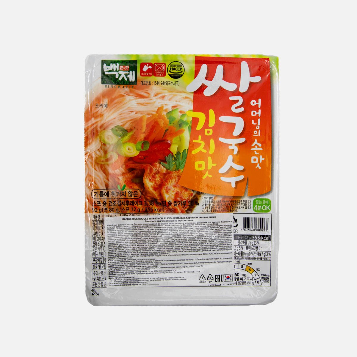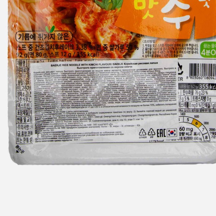 Лапша Баекже Рисовая со вкусом кимчи б/п 92г