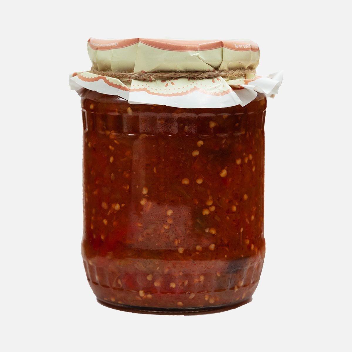 Баклажаны свежие, перец сладкий свежий, томаты свежие, чеснок свежий, соль, сахар, масло масло подсолнечное, перец красный молотый, уксусная кислота.