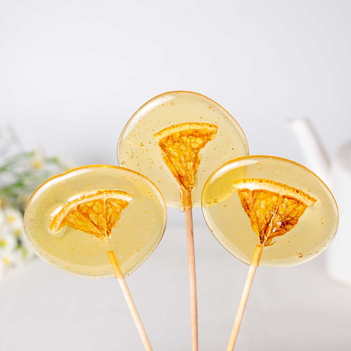При изготовлении изделий из карамели используются несъедобные детали (деревянные палочки). Сахар-песок, сироп глюкозный, апельсины сушеные, уксус, краситель пищевой.