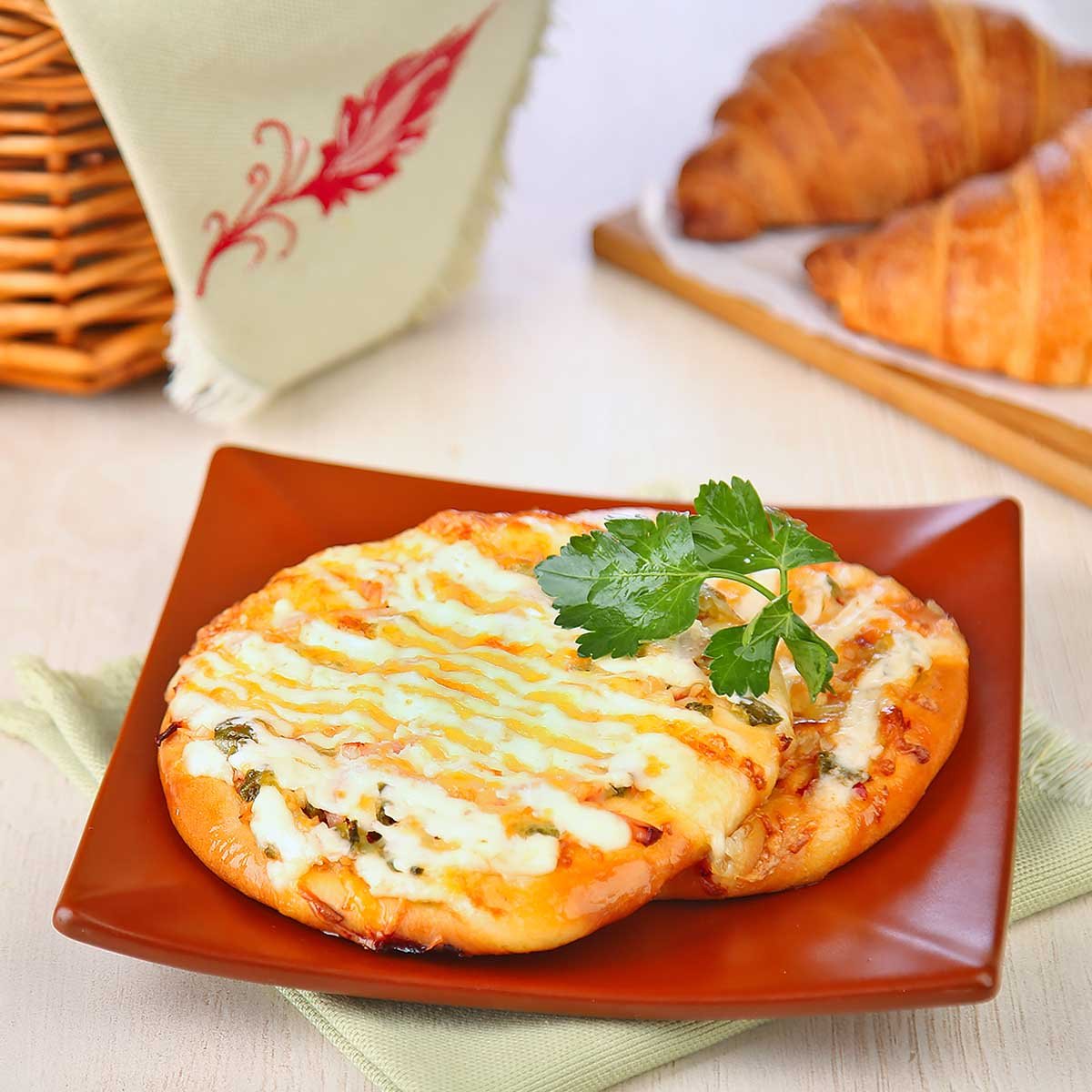 Тесто (мука пшеничная в/с, молоко, яйцо куриное, масло сливочное, сахар, сметана, дрожжи, соль, масло подсолнечное), майонез, сыр, ветчина, огурцы консервированные, шампиньоны консервированные, кетчуп, паста томатная, орегано, перец ч/м