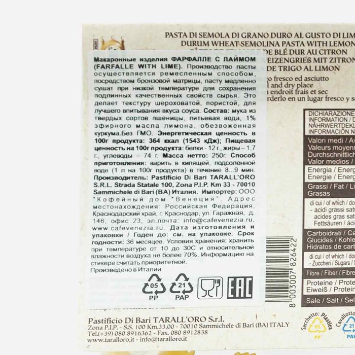 Мак. изд. Ди Бари Фарфалле с лимоном к/к 250г