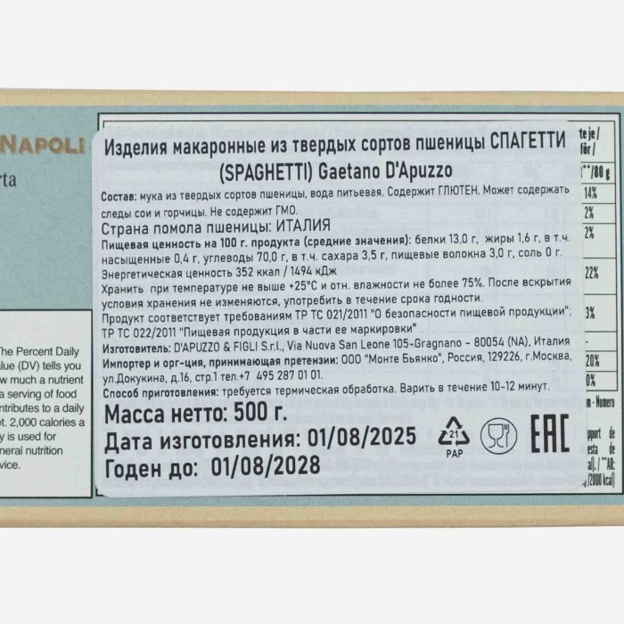 Мак. изд. Гаэтано Д'Апуццо Спагетти к/к 500г