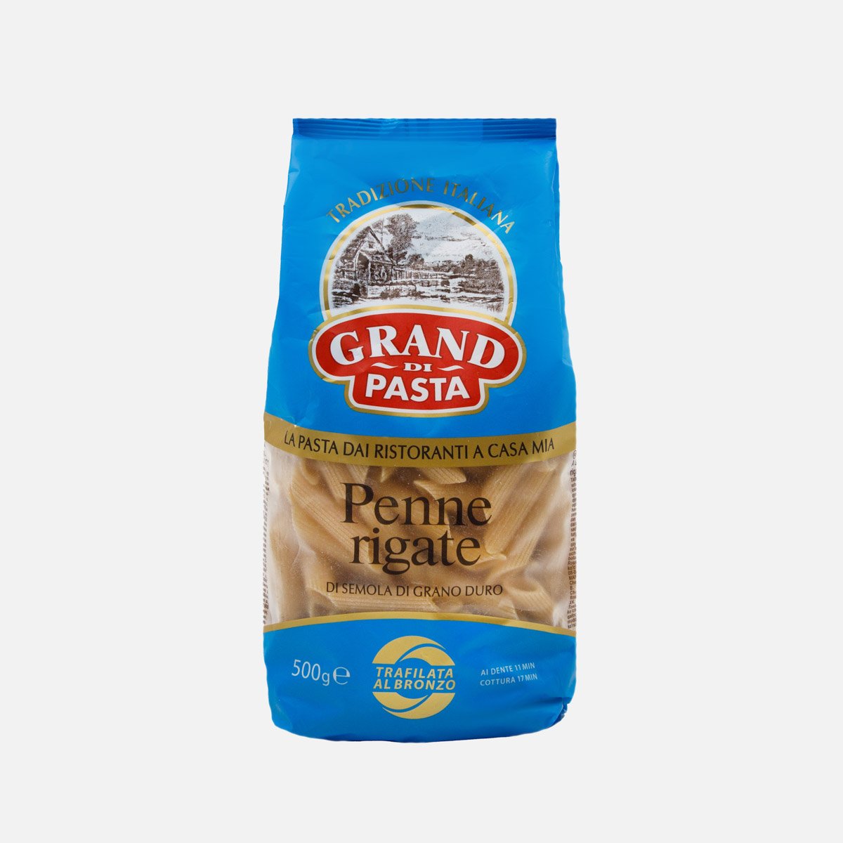 Макаронные изделия премиум-класса, произведенные из элитных сортов твердой пшеницы на современном итальянском оборудовании компании "Макфа". Благодаря эксклюзивной итальянской рецептуре, приобретенной компанией "Макфа" у старинной семейной фабрики в Италии, паста приобрела великолепный вкус, способность отлично впитывать соусы и сохранять первозданную форму. Grand di Pasta - макаронные изделия для любителей подлинной итальянской кухни. Перья - классическая итальянская паста дает простор для творчества! Благодаря бесчисленному многообразию соусов, которые великолепно подходят к пасте, Вы можете создавать разнообразные блюда и радовать ими своих родных и близких. Превосходное сочетание пасты и соусов, состоящих из мяса, морепродуктов, овощей или грибов превратят блюдо в сытное и полезное, идеально подходящее для обеда.