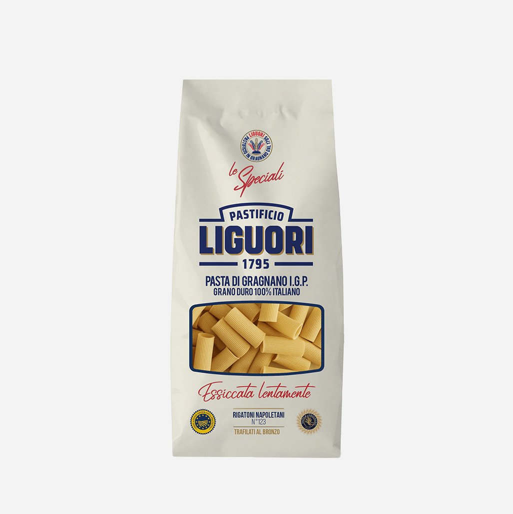 Традиционная неаполитанская паста, характеризующаяся продольными бороздками. Известный итальянский производитель Pastificio Liguori готовит это изделие по своим уникальным рецептам, поэтому их версия ригатони отличается от классической. Паста получается более вытянутой формы, которая позволяет ей эффективнее впитывать в себя соус. Оцените новую версию популярного продукта!