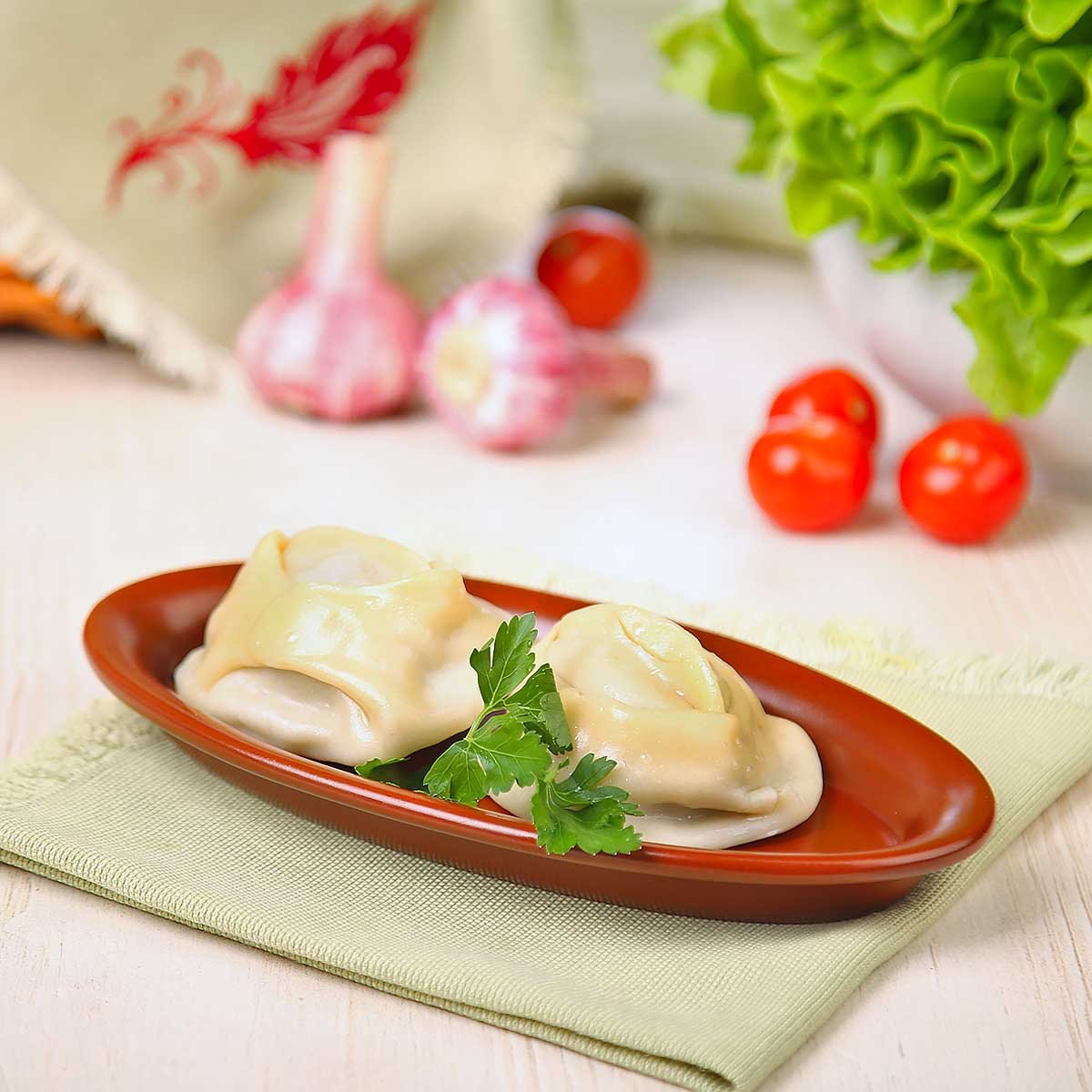 Лук репчатый, мука пшеничная в/с, мясо говядина, мясо свинина, масло сливочное, яйцо куриное, молоко цельное, масло подсолнечное, соль, зелень, перец черный молотый.