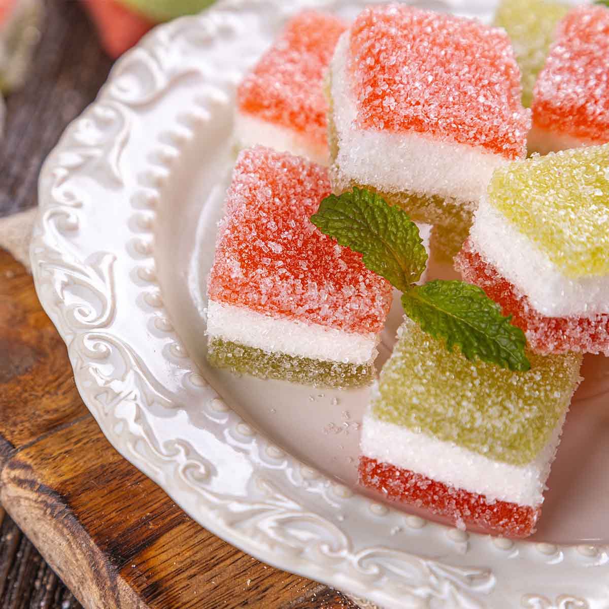 Позвольте вкусу киви и арбуза окунуть вас в яркое настроение! Этот мармелад тает на языке, раскрыв соки фруктов в каждой дольке. Основа на пектине и натуральных компонентах: глюкозный сироп, сахар, лимонная кислота, яичный белок – гармония безупречная, но легко и сбалансированно сладкая. Натуральные пищевые красители, ароматы и освежающая кислинка дополняют ощущение лёгкости и сочности. Закажите доставку, и ароматная свежесть лета будет всегда под рукой!