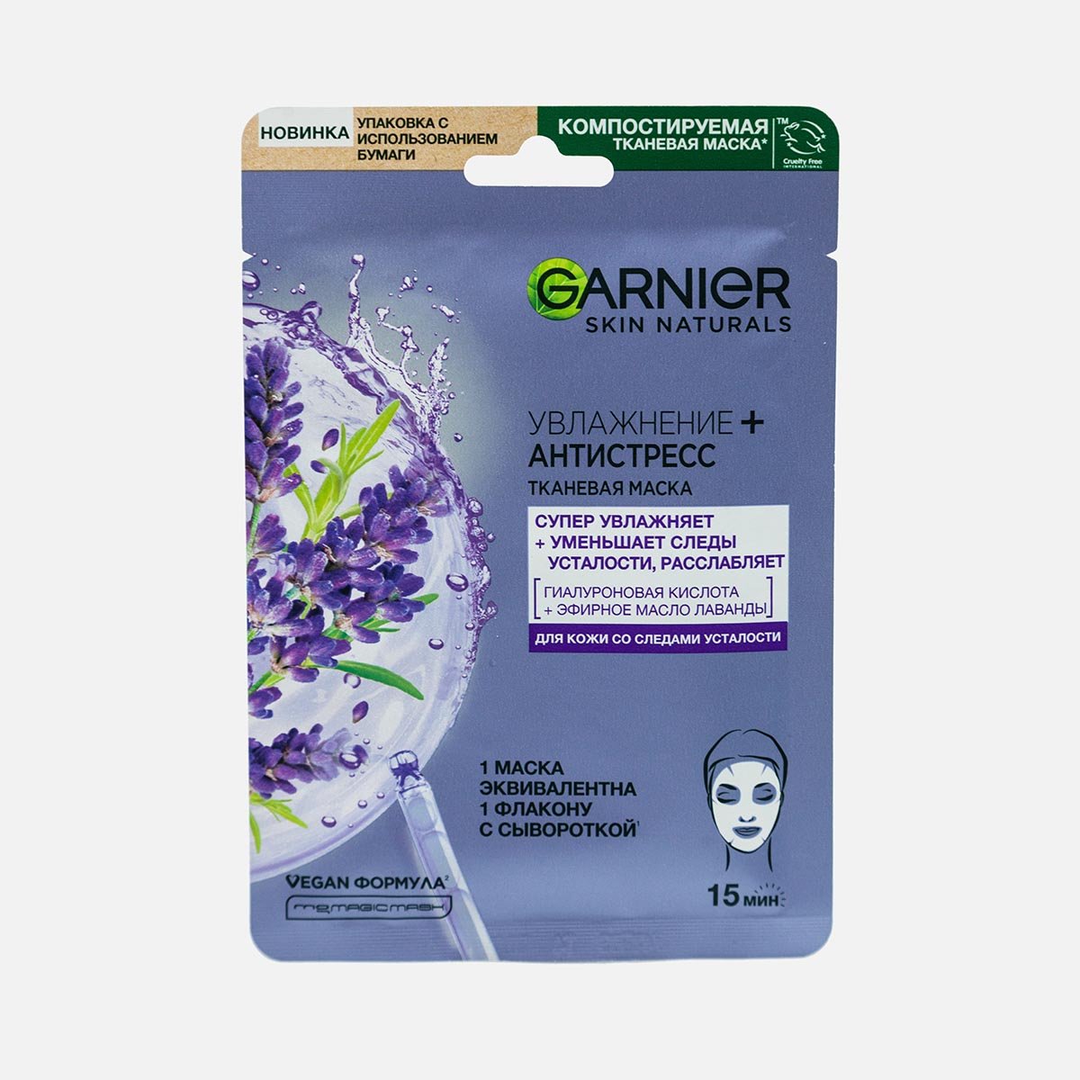 Маска Гарньер тканевая Увлажнение+антистресс лаванда 32г