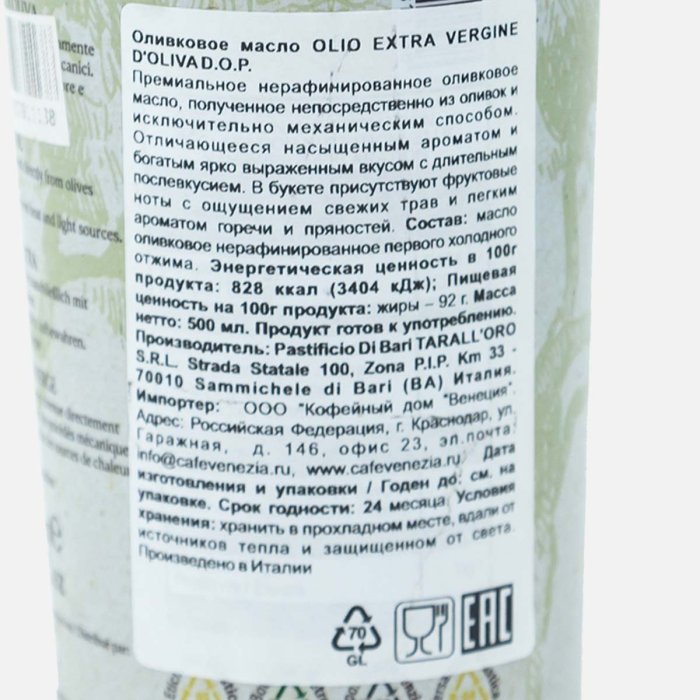 Масло Ди Бари оливковое DOP Экстра Вирджин 500мл