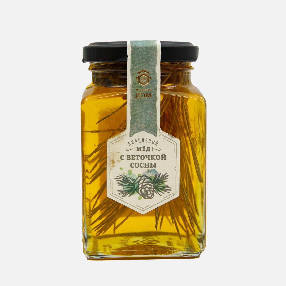 Мёд Медовый дом Акациевый с веточкой сосны ст/б 320г