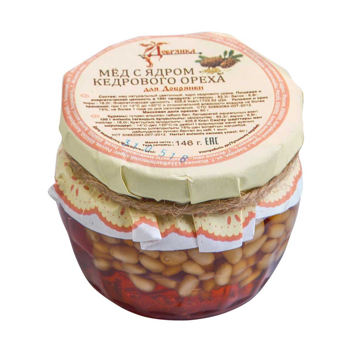 Мед натуральный цветочный, ядро кедрового ореха