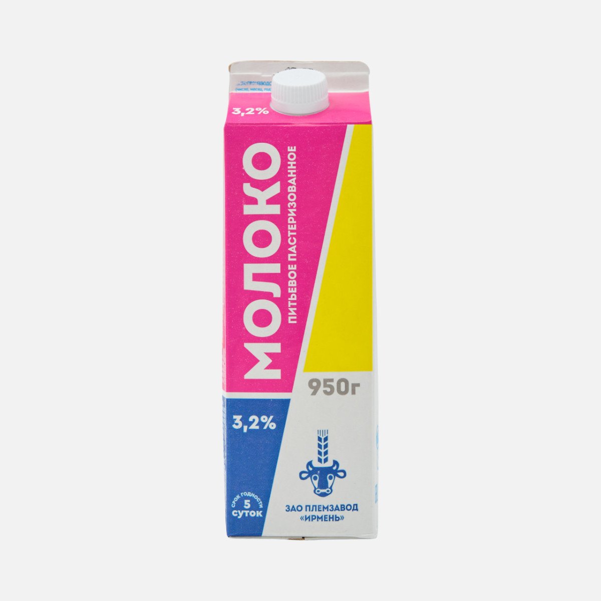 Цельное нормализованное пастеризованное молоко "Ирмень" 3,2% жирности. Питьевое молоко без добавления сухих молочнокислых продуктов и воды.