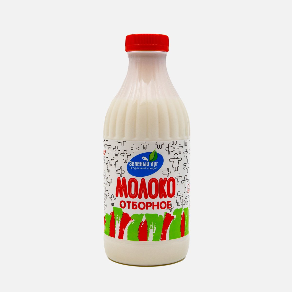 Отборное пастеризованное цельное коровье молоко "Зелёный луг" 3,2-4,5% жирности.