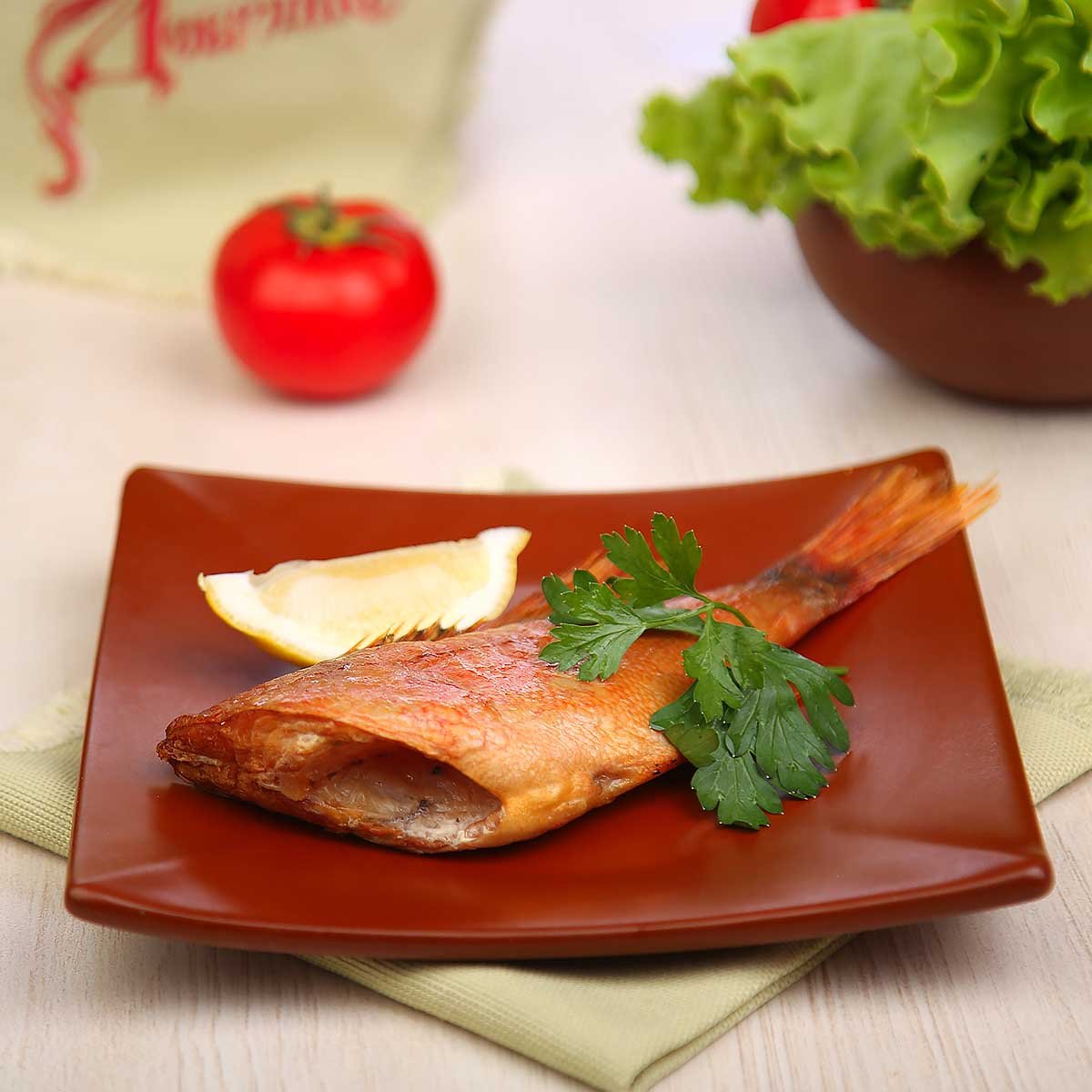 Мясо морского окуня горячего копчения в меру жирное, практически без костей, обладает нежным ароматом дыма и сладковатым вкусом. Источник Омега-3 и Омега-6 жирных кислот.