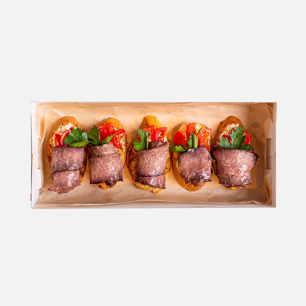 Набор из Брускетт с ростбифом и соусом цезарь 50г*5шт