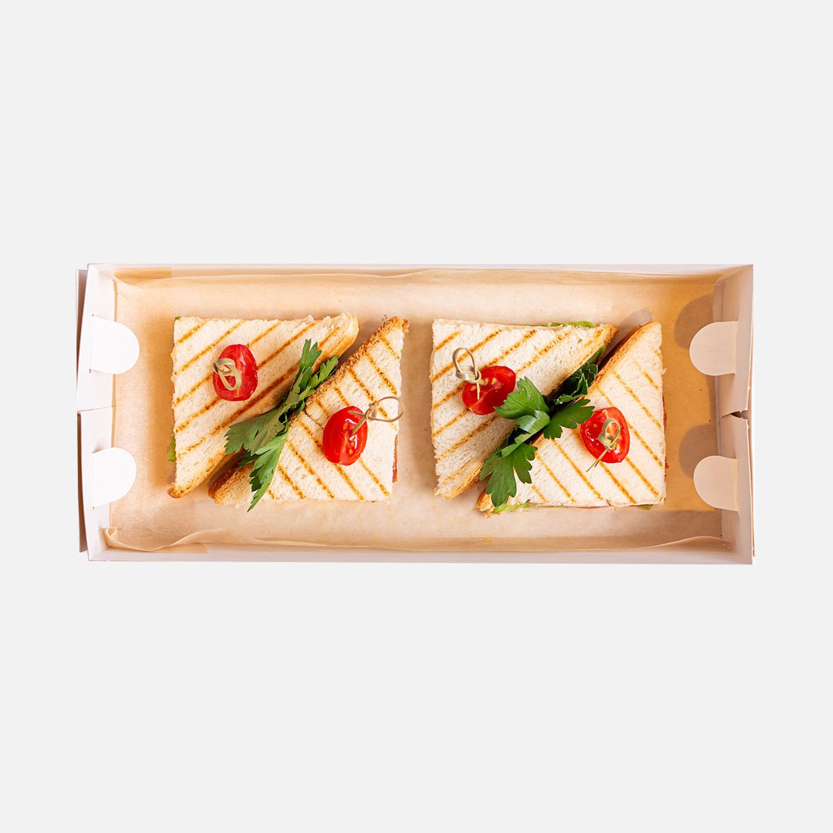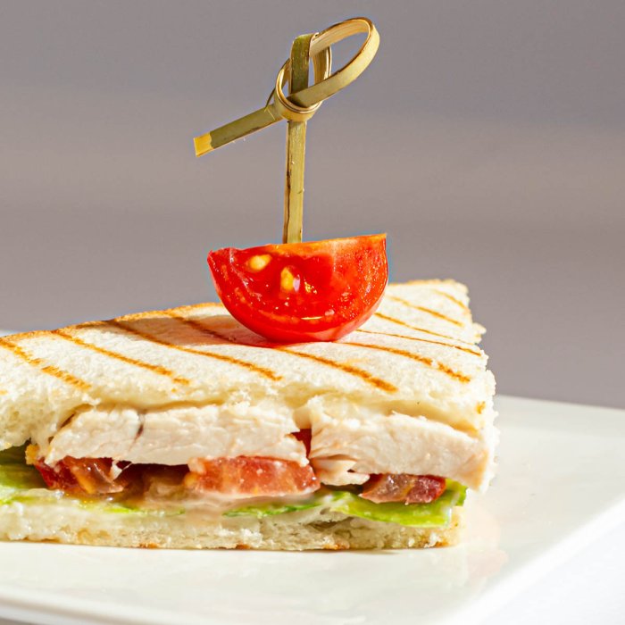 Хлеб для сэндвичей, филе цыпленка, сыр плавленый, томаты, лист салата айсберг