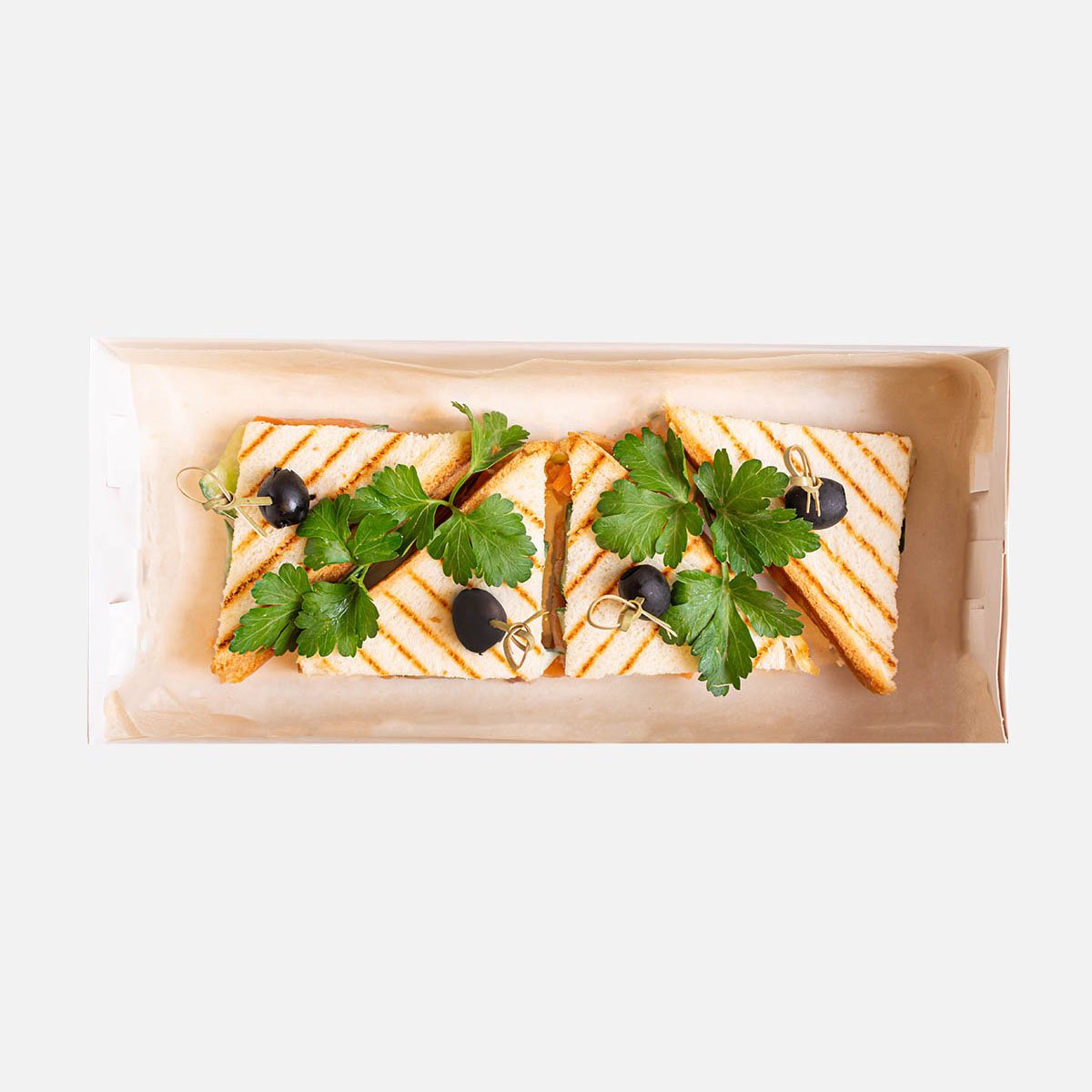 Хлеб для сэндвичей, филе лососся с/с, сыр плавленый, свежий огурец, лист салата айсберг, маслина