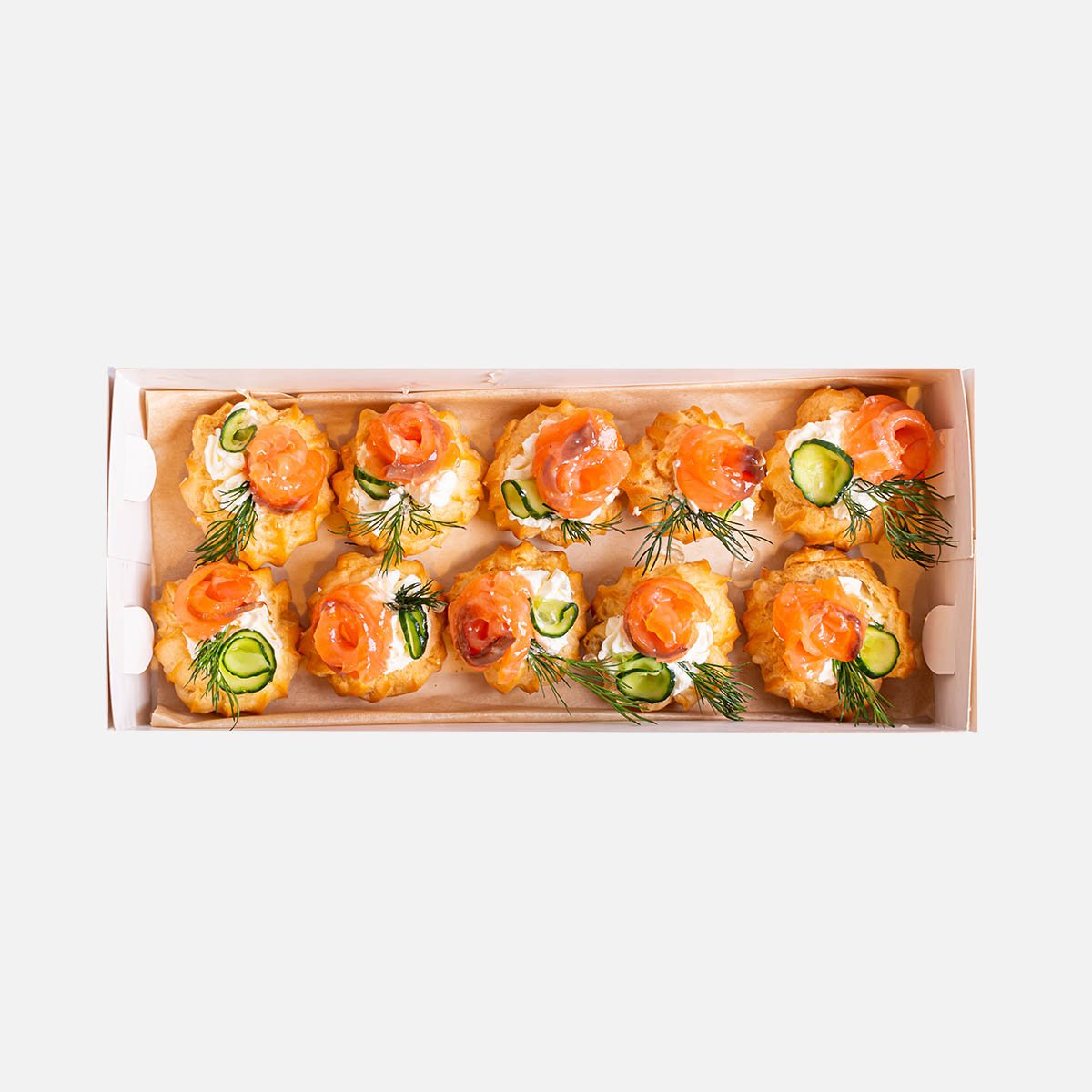 Набор из Закуски фуршет Профитроли с творожным сыром и семгой 30г*10шт