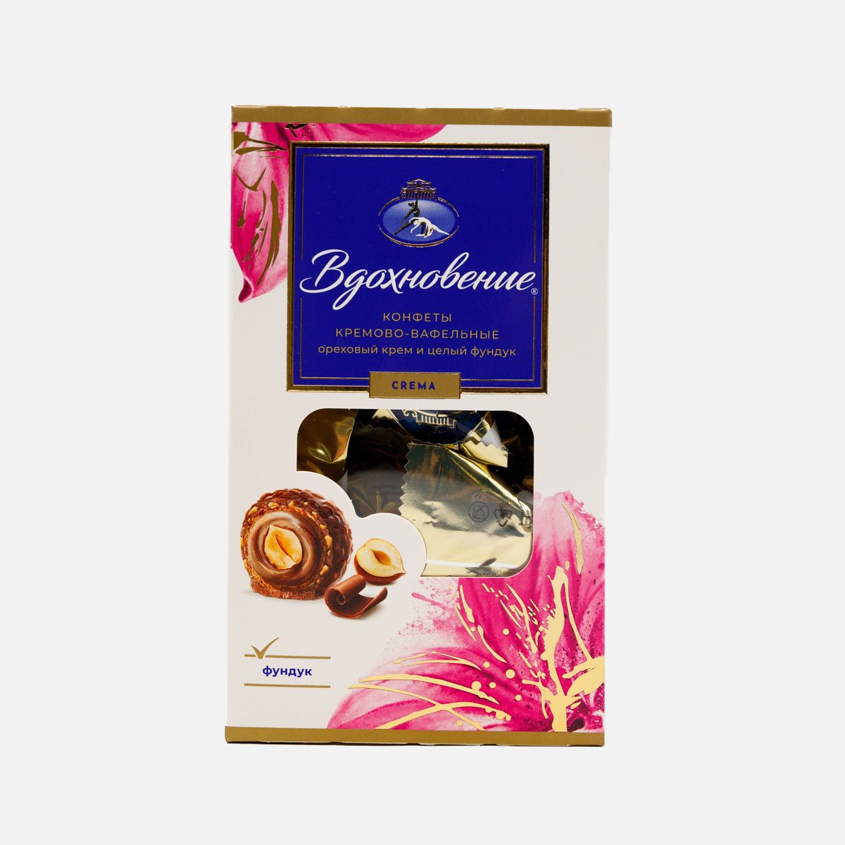 Шоколадно-ореховый крем и целое ядрышко фундука, покрытые тонкой хрустящей вафлей в шоколадной глазури с измельчёнными орешками. Без ГМО.