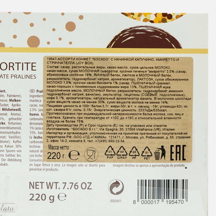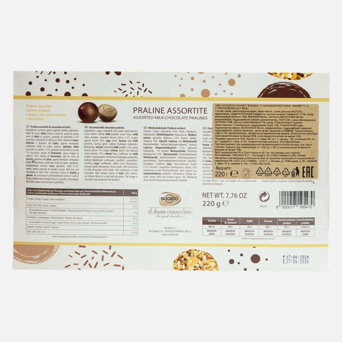 Набор конфет Сокадо Джой Бокс Ассор с капучино/амаретто/страччат 220г