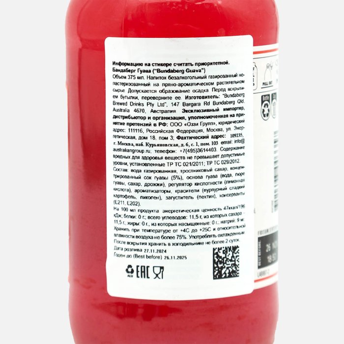 Напиток Бандаберг Гуава газ ст/б 0,375л