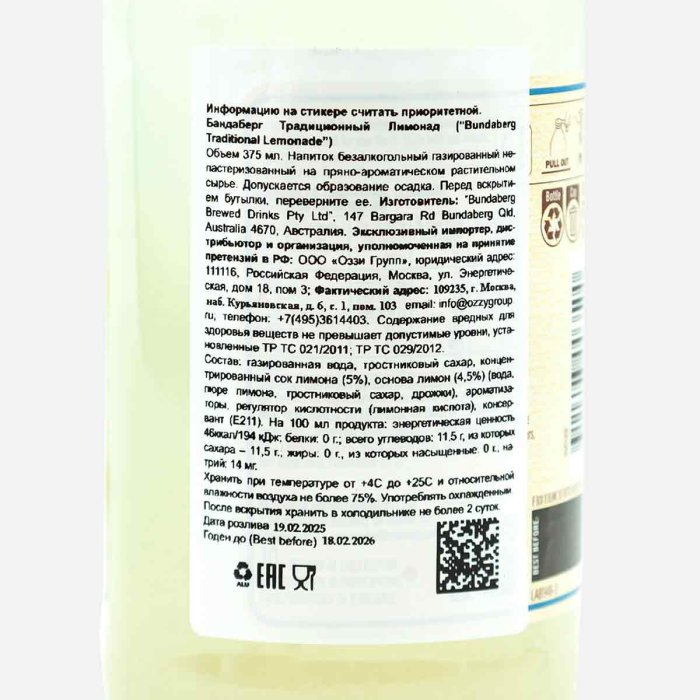 Напиток Бандаберг Традиционный лимонад газ ст/б 0,375л