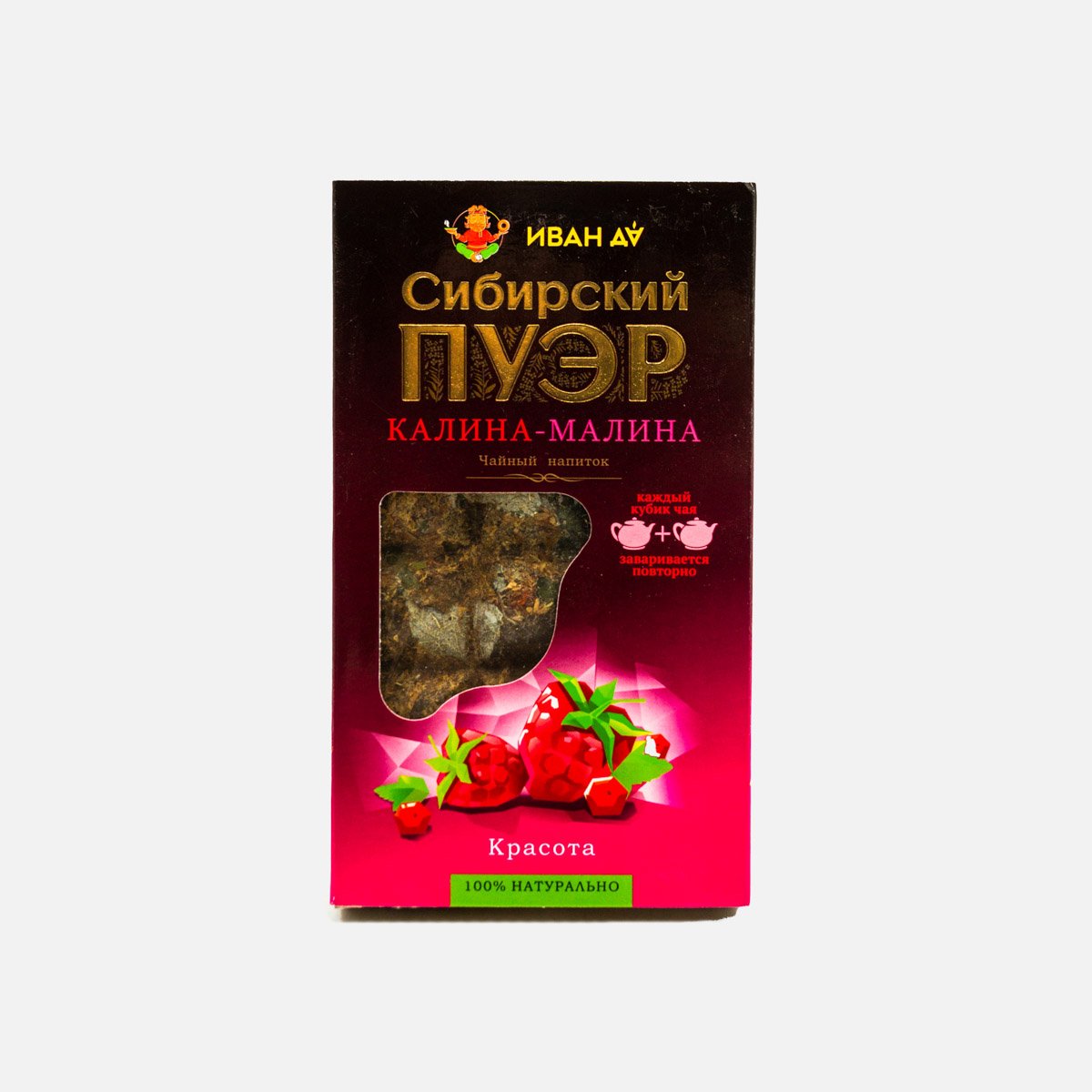Напиток чайный ИванДа Сибирский Пуэр с малиной/калин плитка к/к 96г