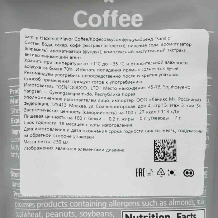 Напиток кофейный Самлип со вкусом фундука 230мл