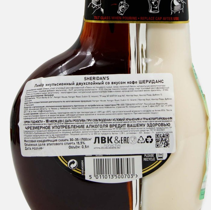 Напиток спиртной Шериданс двухслойн ликер со вкусом кофе 15.5% ст/б0,5л