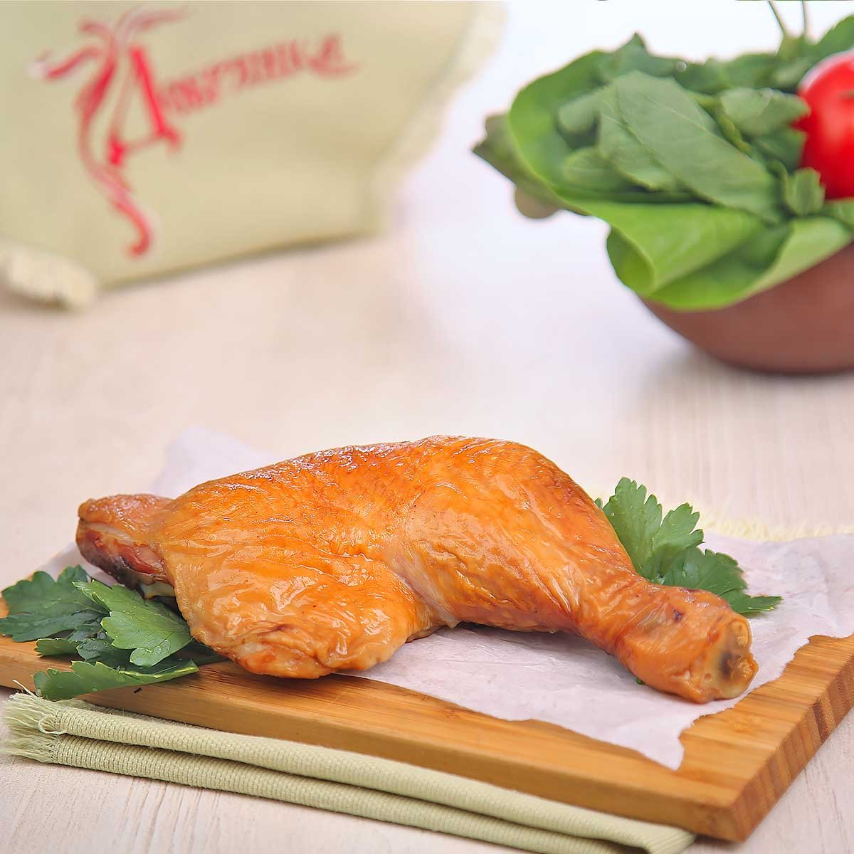 Окорочка куриные горячего копчения — сочные, ароматные и безупречно приготовленные. Благодаря технологии горячего копчения окорочка сохраняют свою нежность, при этом пропитываются легким дымным ароматом, который делает вкус особенно глубоким. Щепотка соли и небольшое количество сахар-песка идеально подчеркивают натуральный вкус мяса, создавая гармоничный баланс сладковато-пряных оттенков. Аппетитная золотистая корочка соблазняет с первого взгляда и добавляет текстурный контраст. Отличный выбор как для уютного ужина, так и для праздничного стола. Доставка позволит вам насладиться этим лакомством без лишних хлопот — просто разогрейте и подайте.
