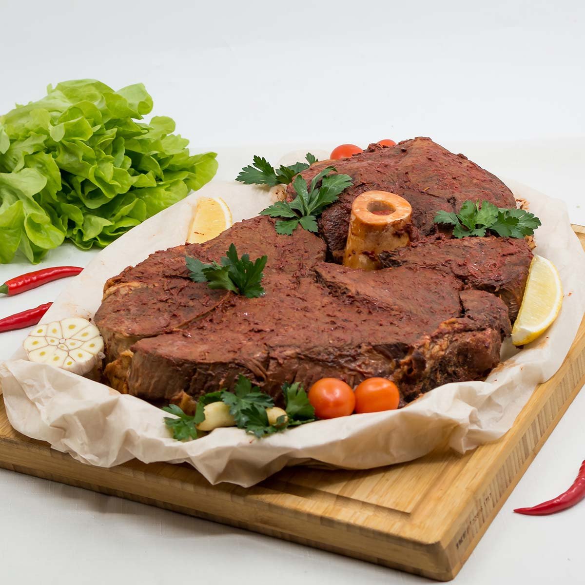 Жаренная в русской печи говядина украшала столы русской знати еще в XѴІ столетии. «В поварнях знатных господ», как писал Василий Лёвшин, для приготовления жаркого определялись «особливые повара жарельщики». Мы в «Добрянке» тоже подходим к приготовлению жаркого «с ревностным старанием». Говядина, грамотно зажаренная в русской печи, отличается по вкусу от приготовленной на сковороде или на гриле. Глазурь на основе томатной пасты с аджикой и специями одновременно предохраняет мясо от пересыхания и обогащает его вкус. Мало с чем говядина сочетается так хорошо, как с терпкой кислинкой уваренных томатов и теплыми нотками разных видов перца. Блюдо-событие на вашем столе!