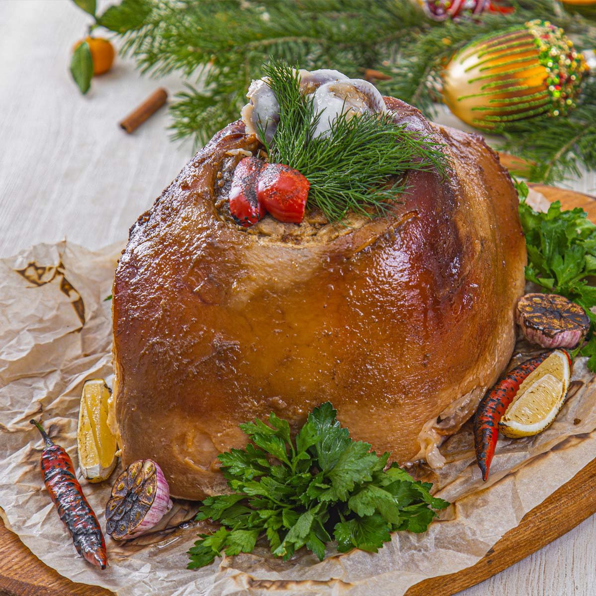 Только в русской печи окорок получается таким сочным и нежным. Мы томили его с фермерской сметаной, горчицей, чесноком и черным перцем. Свинина богата белком, витамина группы В. Угощайтесь!