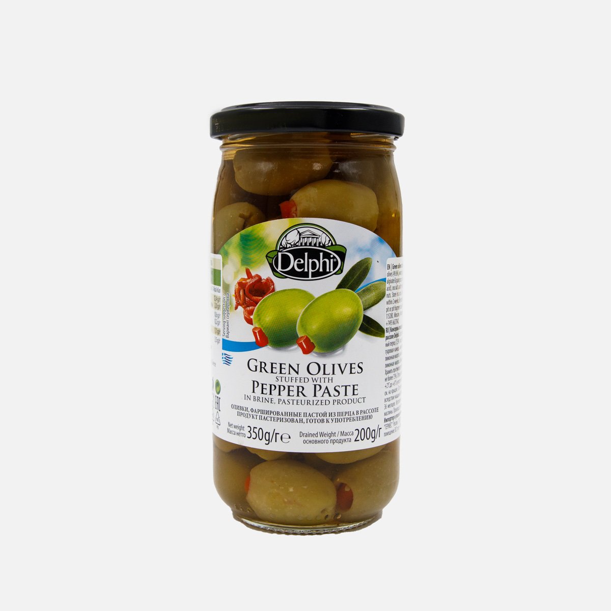 Оливки Делфи фаршированные пастой из перца ст/б 350г