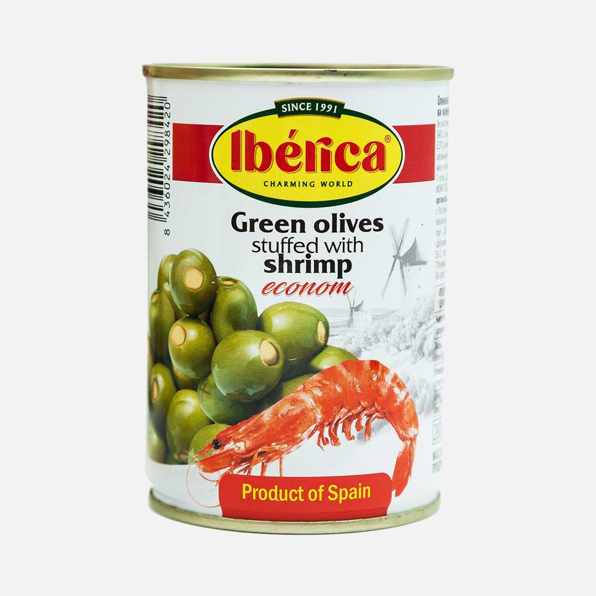 Оливки без косточки, паста из креветки 6% (вода , креветка, стабилизатор Е401), соль, усилитель вкуса и аромата: Е621 регуляторы кислотности Е330, Е270, антиокислитель Е300. Может содержать фрагменты косточек.