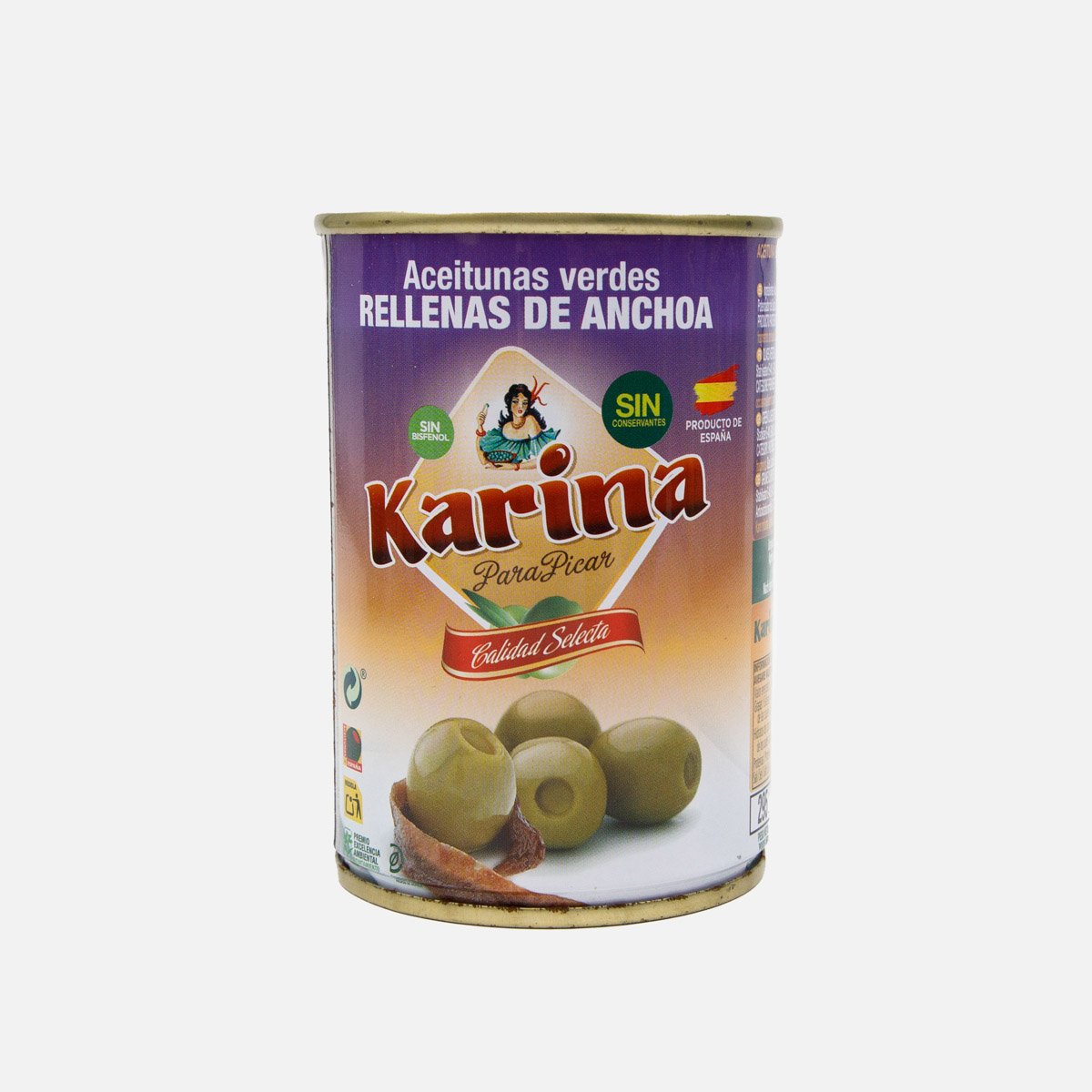 Оливки Карина зеленые с анчоусами ж/б 295г