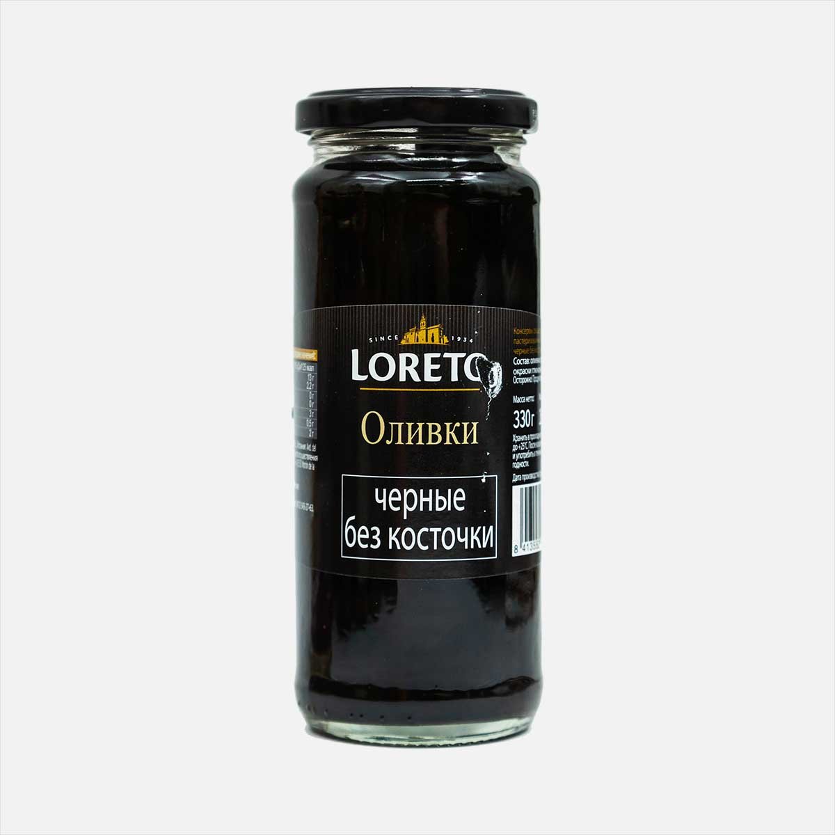 Оливки Лорето черные б/к ст/б 330г