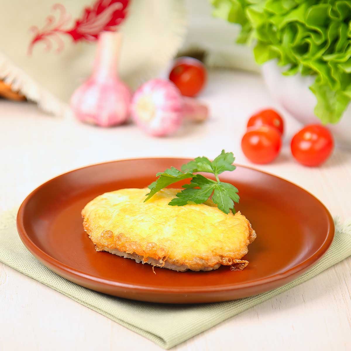 Мясо свинина, сыр, яйцо куриное, масло подсолнечное, горчица французская, уксус спиртовой, соль поваренная, мука пшеничная в/с, соль, зелень, перец черный молотый.