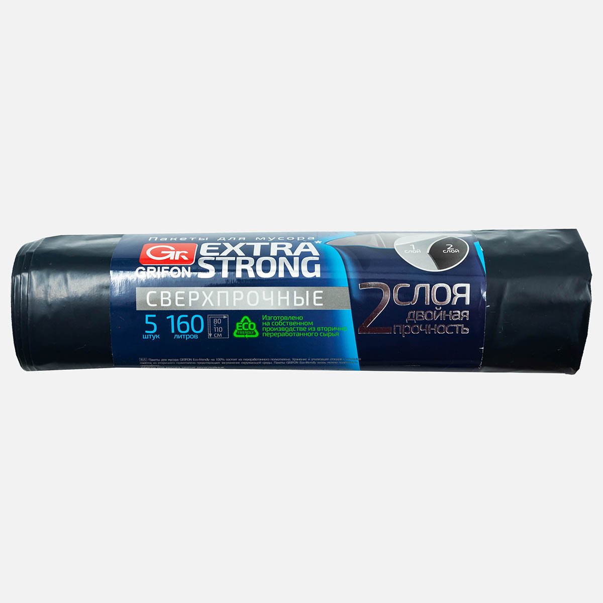 Пакеты д/мусора Грифон двухслойные 160л 80х110см 5шт в рул 101-505